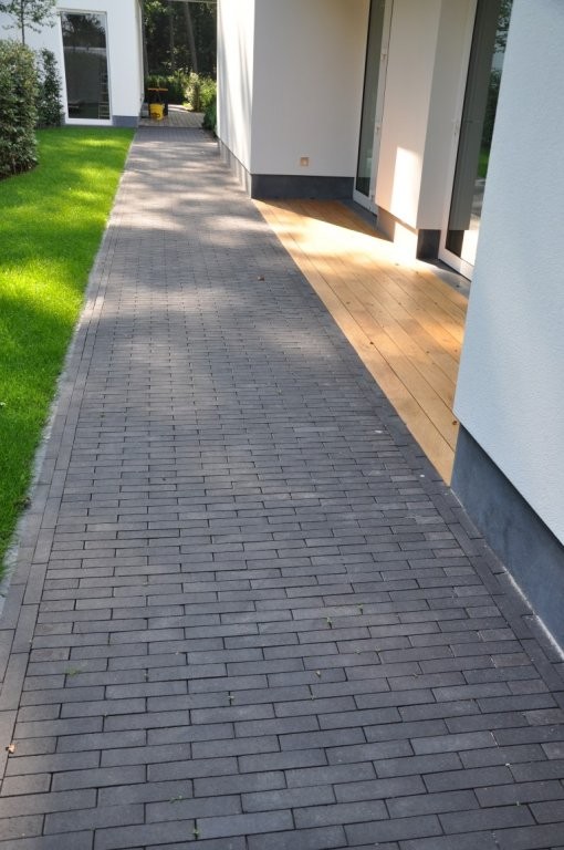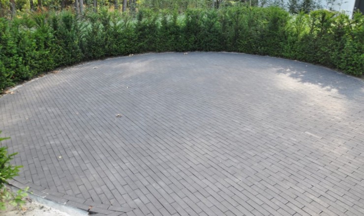 Les pavés “Knokke” sont noirs, égaux et colorés dans la masse.