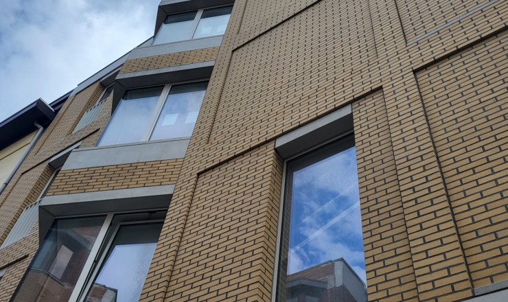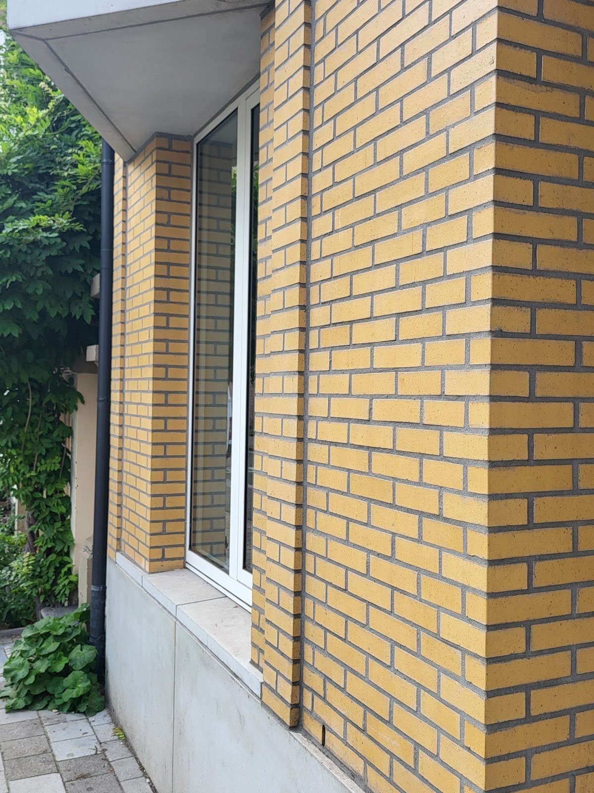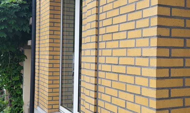 Les briques de parement sont jaune tendre avec de légères irrégularités, colorées dans la masse.